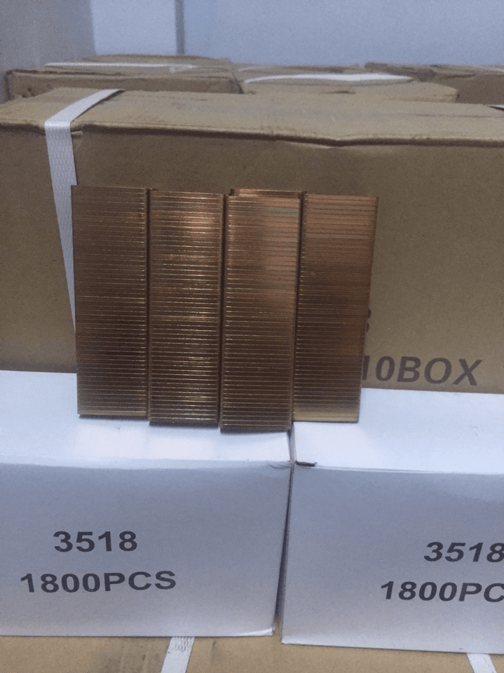 Đinh ghim Thùng carton 3518-1800PCS và 2000PCS là loại đinh ghim bằng đồng dùng ghim thùng carton, sử dụng máy bấm bằng hơi hoặc bằng tay. Có nhiều loại khác nhau, nhưng phụ thuộc hàm lượng đồng mà thể hiện loại tốt hay xấu, do đó mà giá của mỗi loại đinh ghim cũng khác nhau.