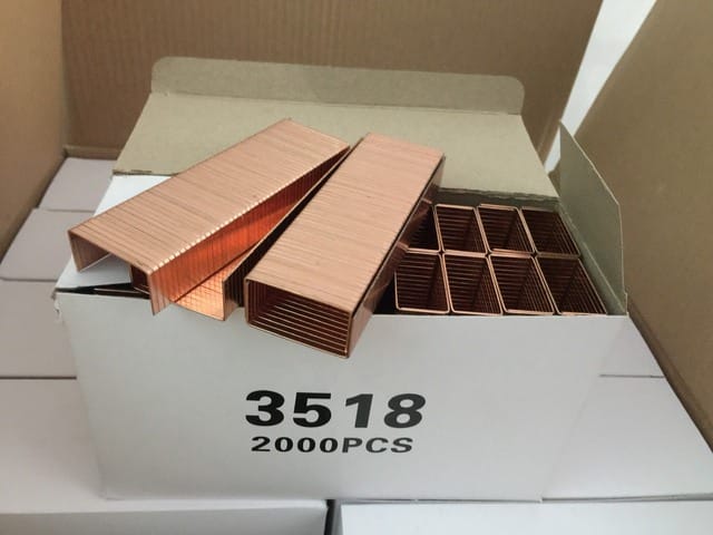 Đinh ghim Thùng carton 3518-1800PCS và 2000PCS là loại đinh ghim bằng đồng dùng ghim thùng carton, sử dụng máy bấm bằng hơi hoặc bằng tay. Có nhiều loại khác nhau, nhưng phụ thuộc hàm lượng đồng mà thể hiện loại tốt hay xấu, do đó mà giá của mỗi loại đinh ghim cũng khác nhau.